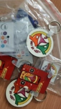 По доброй традиции, личный вклад в мероприятие внесли члены бизнес-клуба «Моё дело: знаю, умею, могу!». На входе в выставочный зал они провели акцию «Дарим детям творчество! Присоединяйся!». Каждый участник получил специальный приз: брелок или значок с логотипами бизнес-клуба ДДТ, блокнот или набор наклеек от Регионального центра финансовой грамотности.